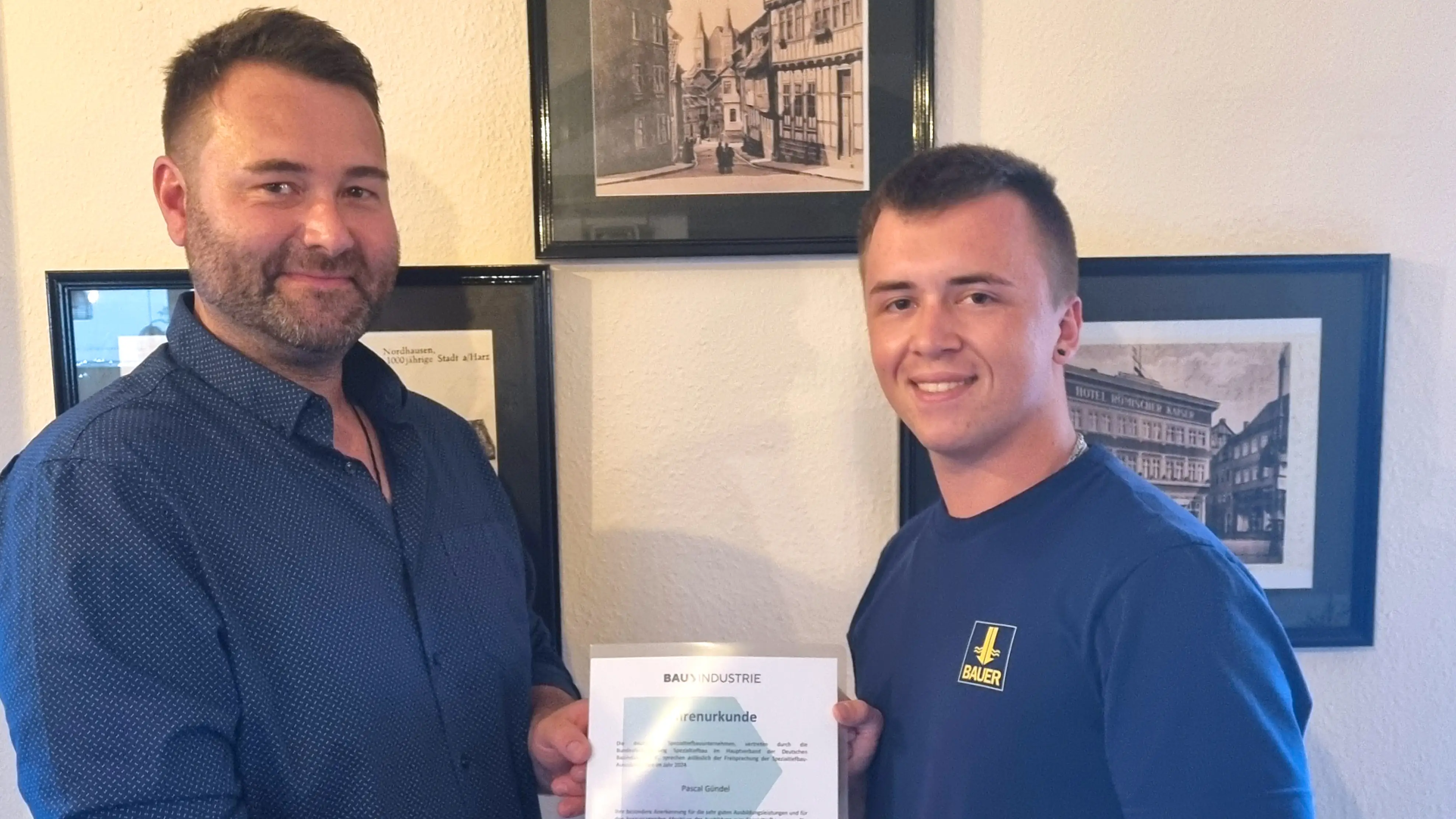 In this festive setting, the German Construction Industry Federation (HDB) also presented awards to the best apprentices - including Pascal Guendel from BAUER Spezialtiefbau GmbH. He completed his training as a specialist foundation engineer at the Nordhausen site. With an impressive result in his final exam, he is one of the top performers in Specialist Foundation Engineering 2024. He completed his training in the winter. Since then, he has been part of the Ground Improvement Department at BAUER Spezialtiefbau GmbH. “With his outstanding performance, Pascal Guendel has shown what is possible with commitment, knowledge and passion. I am delighted that he will remain with Bauer and wish him and, of course, the other three apprentices that successfully completed their training all the best for their future careers,” says trainer Daniel Hink.