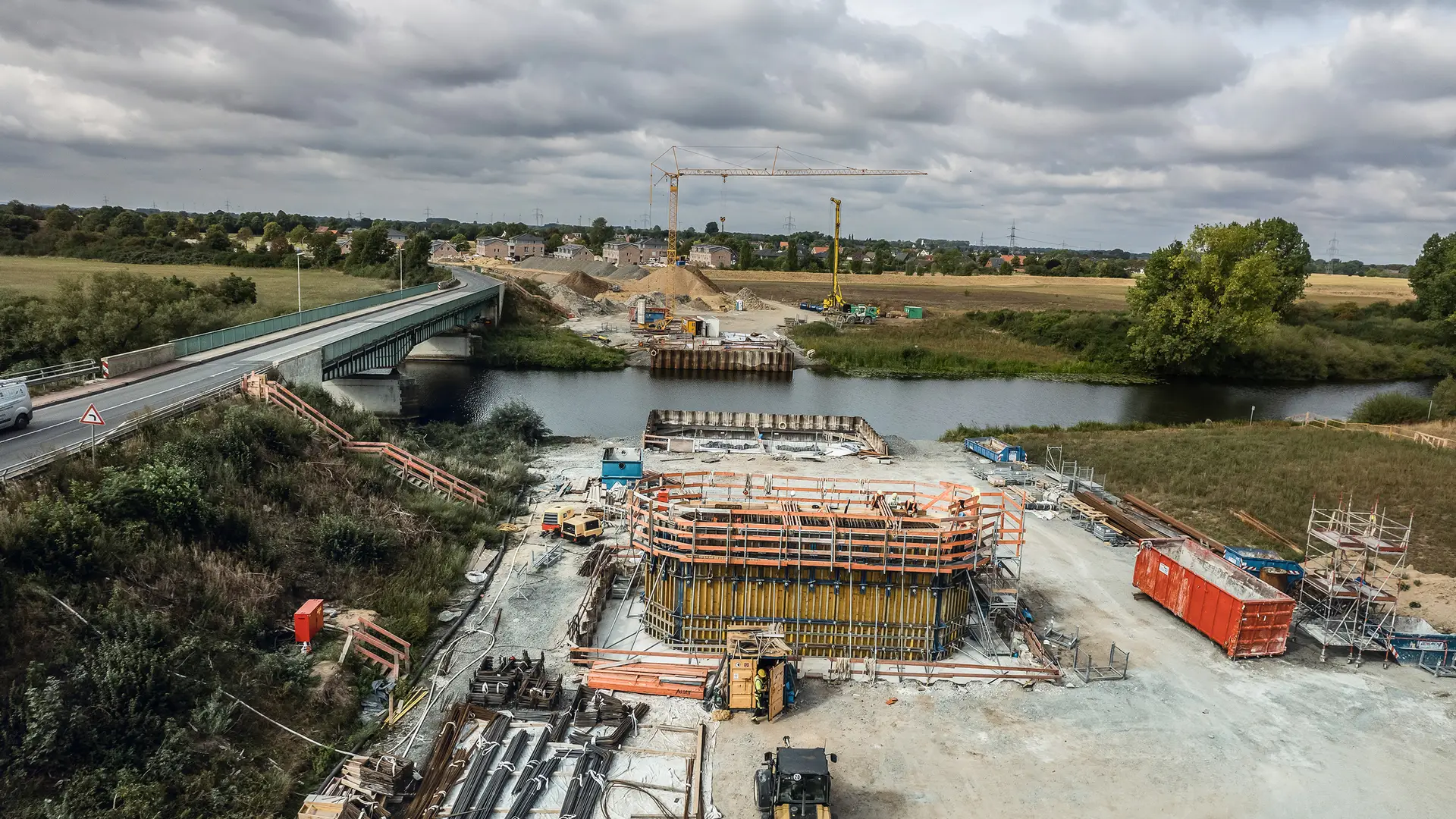 The completion and commissioning of the new Aller bridge is planned for December 2024. This will be followed by the demolition of the old existing bridge as well as the new building of a rain clarification basin made of reinforced concrete in the area of the old structure. Work is currently running full speed and is planned to conclude successfully in December 2025.