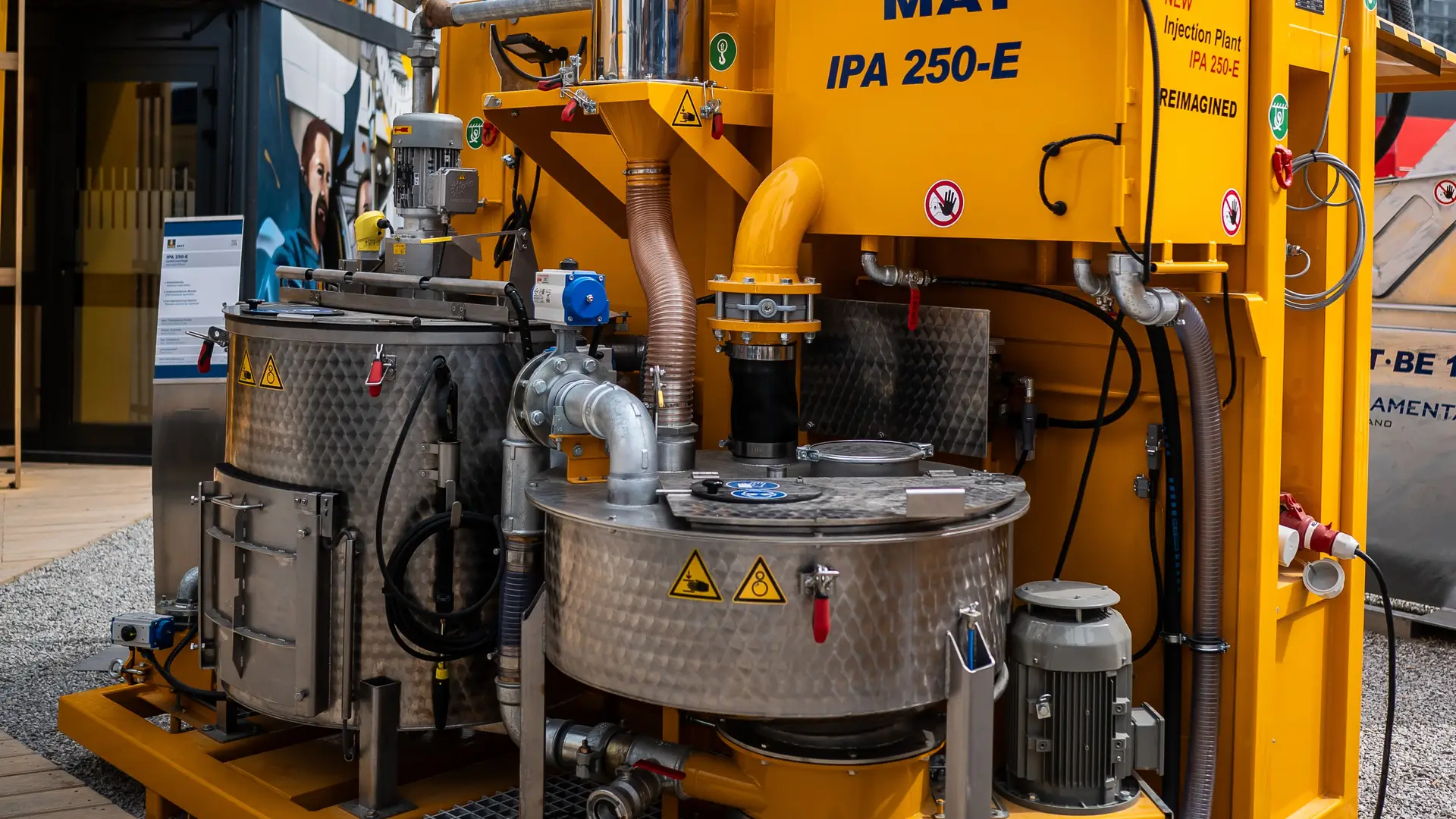 On November 1, 2019, the BAUER Group acquired Mühlhäuser-Obermann GmbH. Under the new name Obermann MAT GmbH, this company has since expanded the MAT portfolio with injection and grouting pumps, mixers and HDI pumps. One example of the successful combination of these two technologies is the IPA 250-E injection plant, which premiered at the bauma 2025. A new ring exchange method for rotors on decanter centrifuges was also unveiled. This replacement with an overhauled rotor considerably shortens the time-intensive and costly rotor maintenance. The advantage for customers is that the downtime of their decanter due to maintenance is reduced by weeks. With the CMS 50, Bauer MAT presented the next generation of its mixing technology.